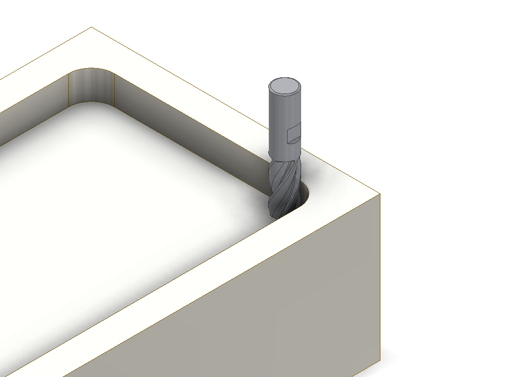 Det også anbefales at benytte en hjørneradius der er en smule større end standardstørrelsen på fræseværktøjet. Det skaber en bedre bane for værktøjet og reducerer risikoen for vibrationer der kan skabe synlige mærker på overfladen af emnet.